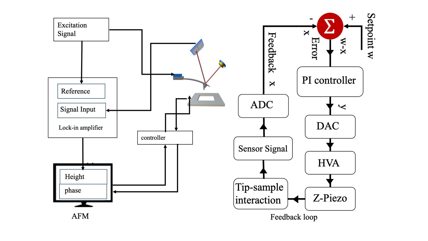 Development and construction of AFM for TERS. This AFM needs to be able to operate in an amplitude modulation mode. While imaging, the distance between the tip and sample is controlled to obtain a near-field Raman signal for TERS mapping.