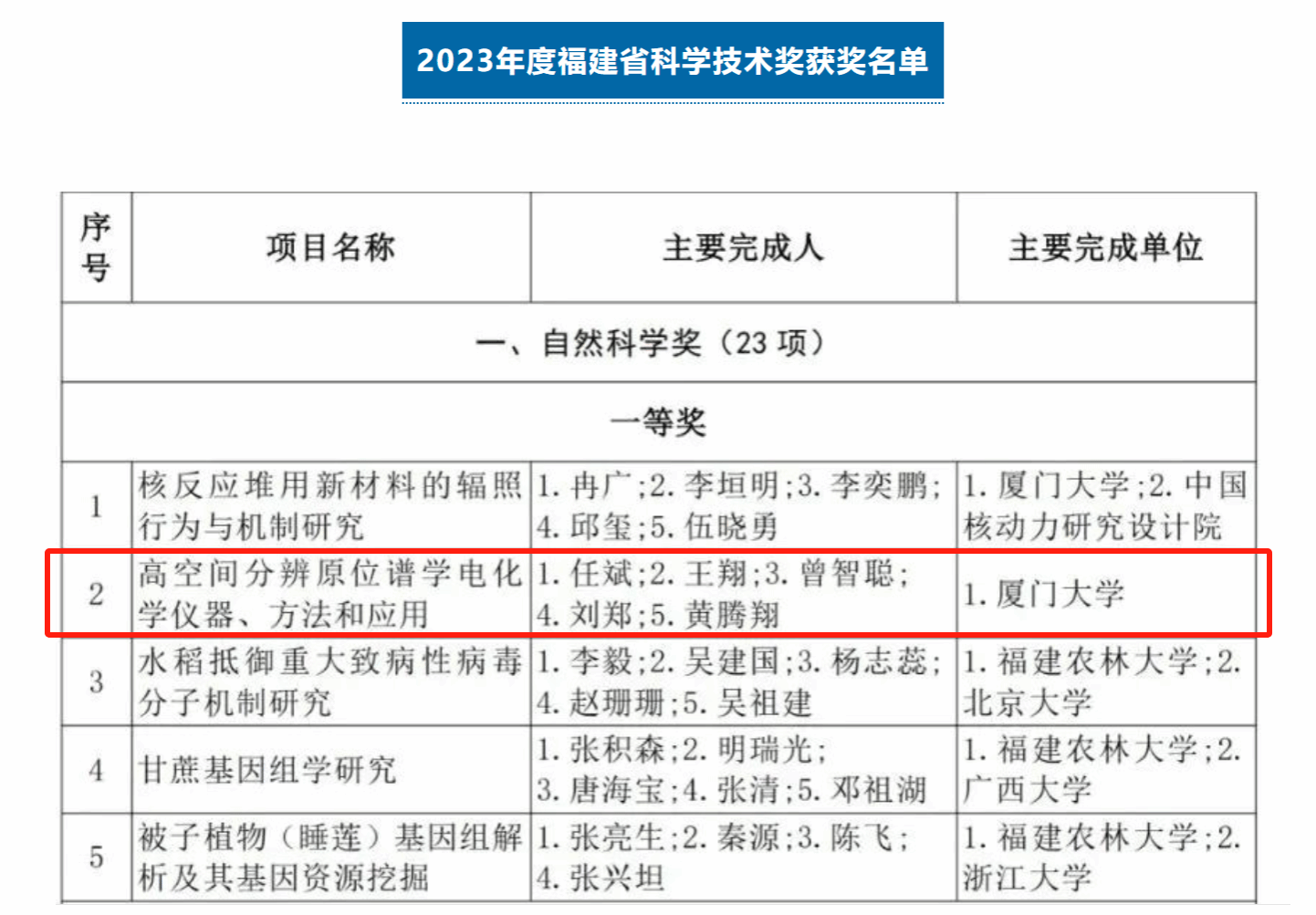 Congratulations to our group for obtaining the First Prize of Fujian Provincial Natural Science Award!
